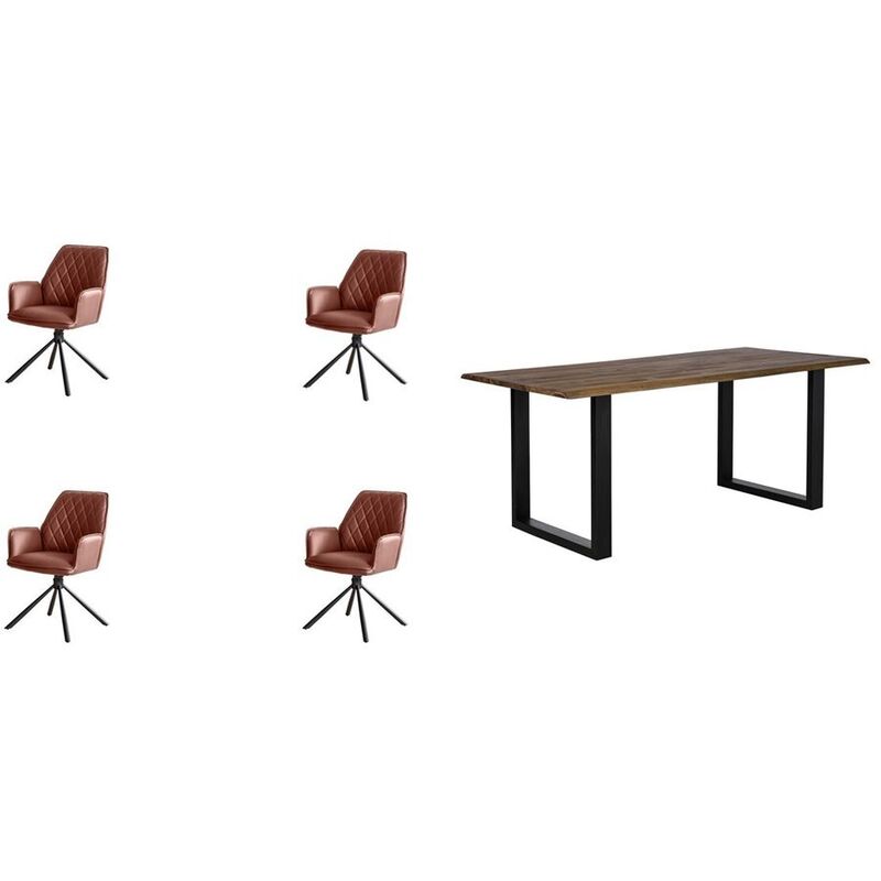 Essgruppe 5 tlg. 180×90 cm – Essgruppe Eats – Akazie/Mikrofaser – B 180 T 90 H 75 cm – Plattenstärke: 26 mm