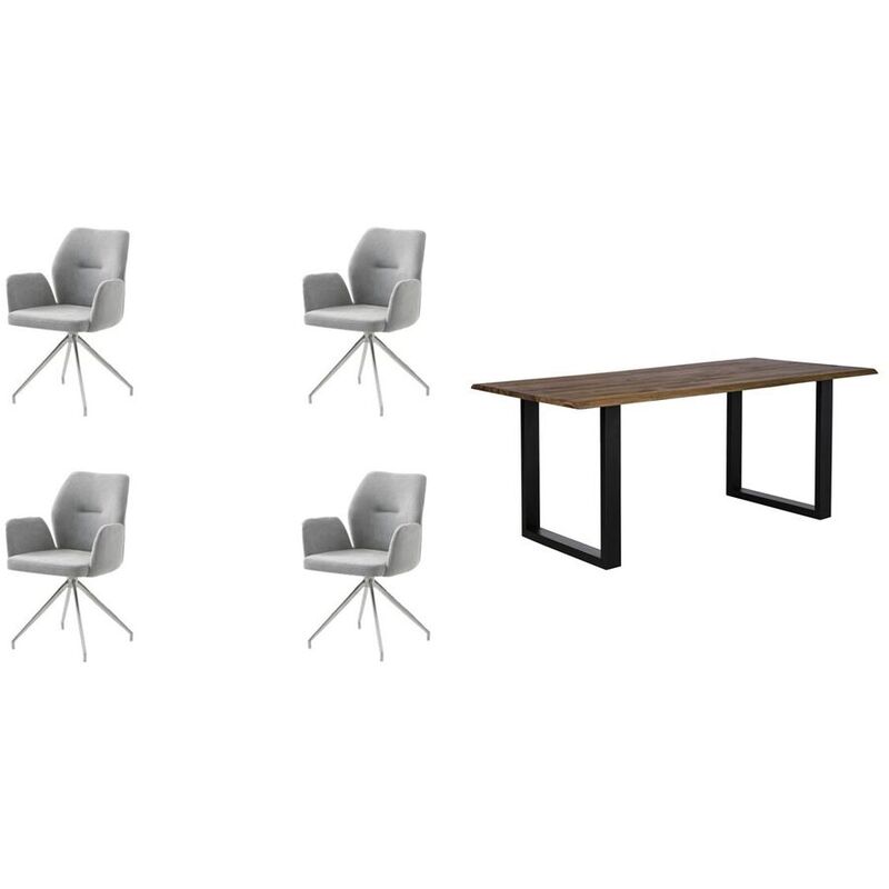 Essgruppe 5 tlg. 160×90 cm – Essgruppe Eats – Akazie/Strukturstoff – B 160 T 90 H 75 cm – Plattenstärke: 26 mm, Masse des Stuhls: 60x62x89