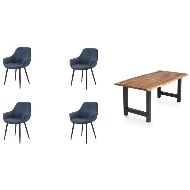 Essgruppe 5 tlg. 180×90 cm – Essgruppe Eats – Akazie/Cordstoff – B 180 T 90 H 76.5 cm – Plattenstärke: 35 mm, Masse des Stuhls: 64x59x86 – Bezug: 80% Polyester, 20% Nylon