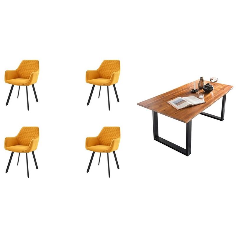 Essgruppe 5 tlg. 160×85 cm – Essgruppe Eats – Akazie/Samt – B 160 T 85 H 77 cm – Plattenstärke: 26 mm, Masse des Stuhls: 61x68x82