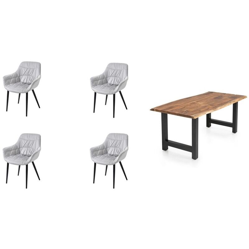 Essgruppe 5 tlg. 180×90 cm – Essgruppe Eats – Akazie/Samt – B 180 T 90 H 76.5 cm – Plattenstärke: 35 mm, Masse des Stuhls: 63x61x81.5
