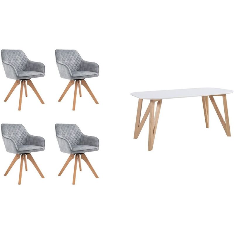 Essgruppe – Essgruppe Yasmin – Samt – B 180 T 90 H 76 cm – Esstisch: B180xT90xH76cm, Abstand zwischen Beine: ca.164cm, Stuhl: B59xT61xH85cm, Sitzhöhe: ca.51cm, Sitztiefe: ca.43cm
