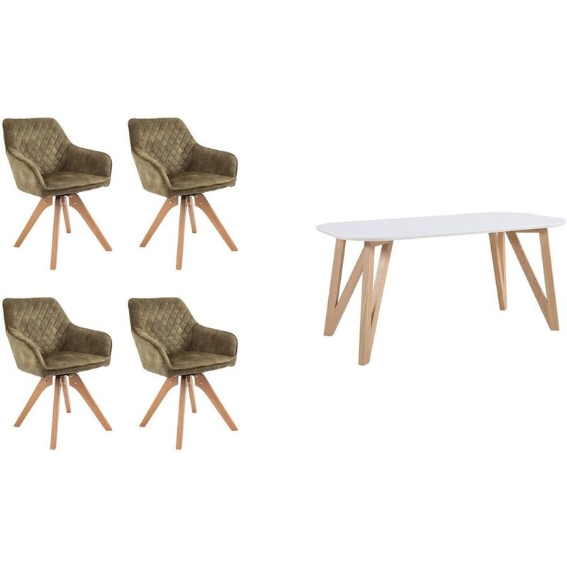 Essgruppe – Essgruppe Yasmin – Samt – B 160 T 90 H 76 cm – Esstisch: B160xT90xH76cm, Abstand zwischen Beine: ca.144cm, Stuhl: B59xT61xH85cm, Sitzhöhe: ca.51cm, Sitztiefe: ca.43cm