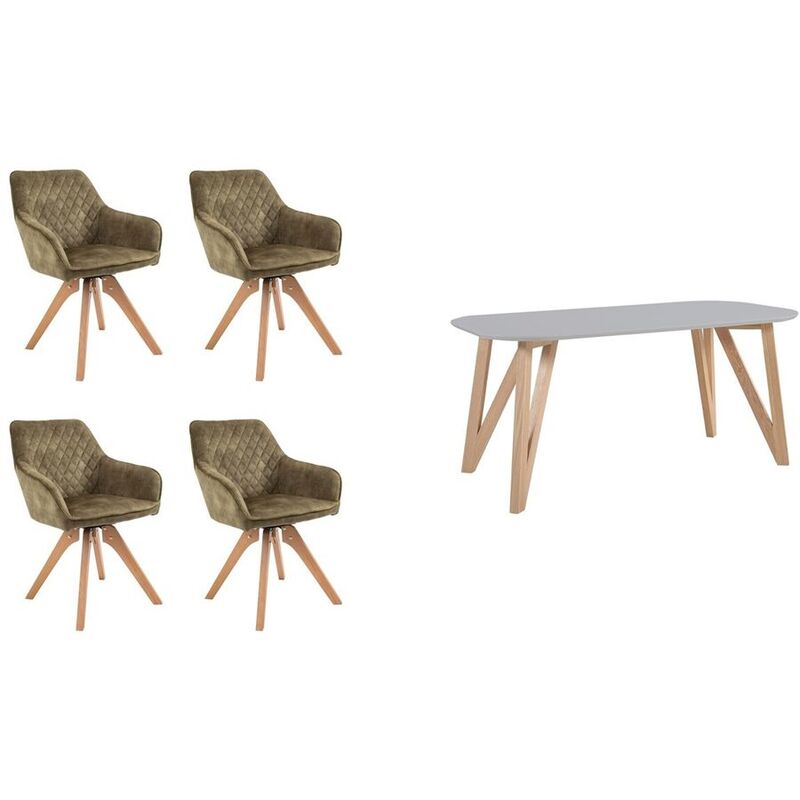 Essgruppe – Essgruppe Yasmin – Samt – B 180 T 90 H 76 cm – Esstisch: B180xT90xH76cm, Abstand zwischen Beine: ca.164cm, Stuhl: B59xT61xH85cm, Sitzhöhe: ca.51cm, Sitztiefe: ca.43cm