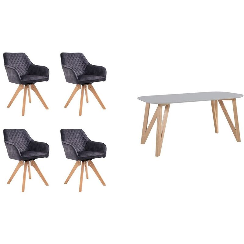 Essgruppe – Essgruppe Yasmin – Samt – B 160 T 90 H 76 cm – Esstisch: B160xT90xH76cm, Abstand zwischen Beine: ca.144cm, Stuhl: B59xT61xH85cm, Sitzhöhe: ca.51cm, Sitztiefe: ca.43cm