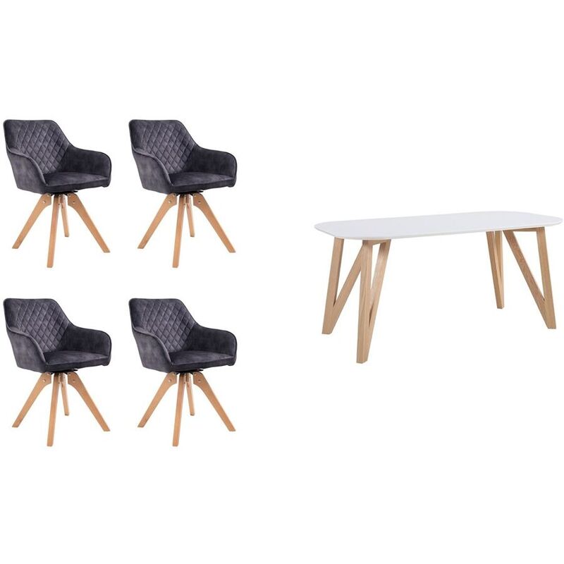 Essgruppe – Essgruppe Yasmin – Samt – B 180 T 90 H 76 cm – Esstisch: B180xT90xH76cm, Abstand zwischen Beine: ca.164cm, Stuhl: B59xT61xH85cm, Sitzhöhe: ca.51cm, Sitztiefe: ca.43cm
