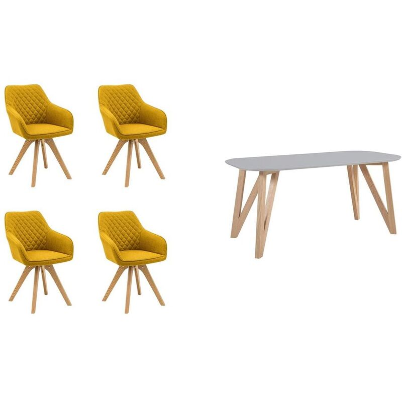 Essgruppe – Essgruppe Yens – Stoff – B 180 T 90 H 76 cm – Tisch:180x90x76cm, Stuhl:59x61x88cm, Sitzhöhe ca.49cm, Sitztiefe ca.42cm, Sitzbreite ca.38,5cm,Höhe der Rückenlehne ca.41cm