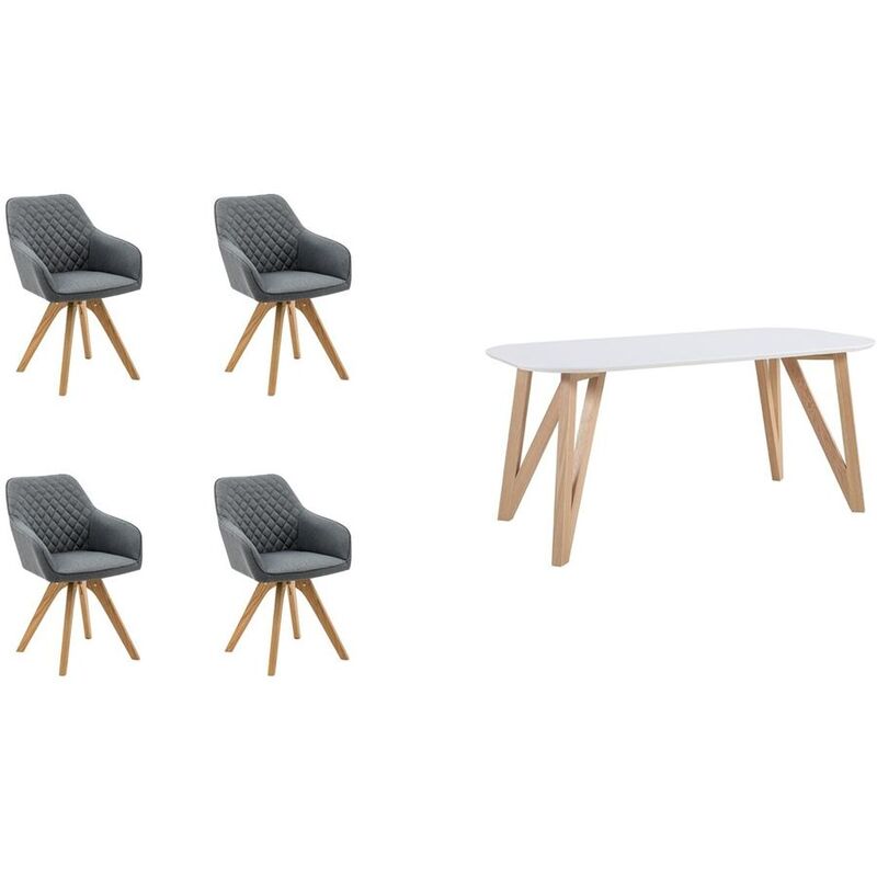 Essgruppe – Essgruppe Yens – Stoff – B 160 T 90 H 76 cm – Tisch:160x90x76cm, Stuhl: 59x61x88cm, Sitzhöhe ca.49cm, Sitztiefe ca.42cm, Sitzbreite ca.38,5cm, Höhe der Rückenlehne ca.41cm