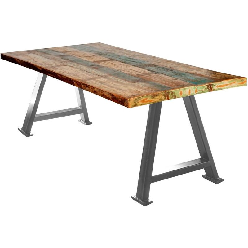 Esstisch mit einer Platte aus recycletem und massivem Holz