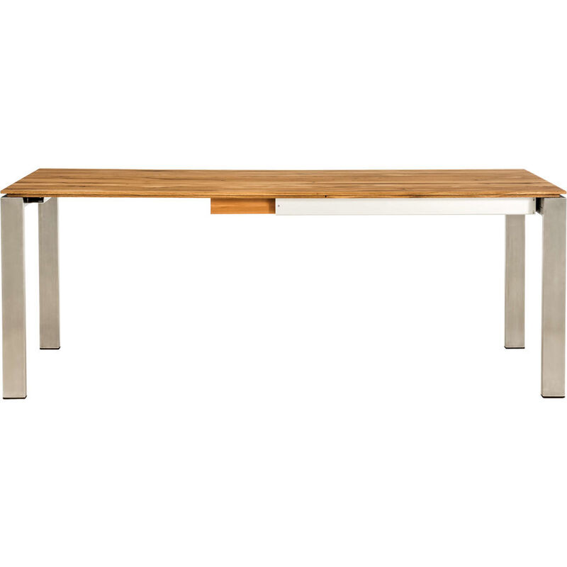 Tisch, Eiche massiv geölt/Edelstahl gebürstet – Esstisch Alvaro – Holz – B 200 T 90 H 75 cm – Ausziehbar, Klappeneinlage 1x, ausziehbar bis B 290 cm