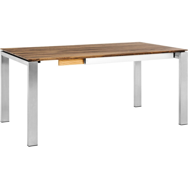 Tisch, Nussbaum massiv geölt/Edelstahl gebürstet – Esstisch Alvaro – Holz – B 200 T 90 H 75 cm – Ausziehbar, Klappeneinlage 1x, ausziehbar bis B 290 cm