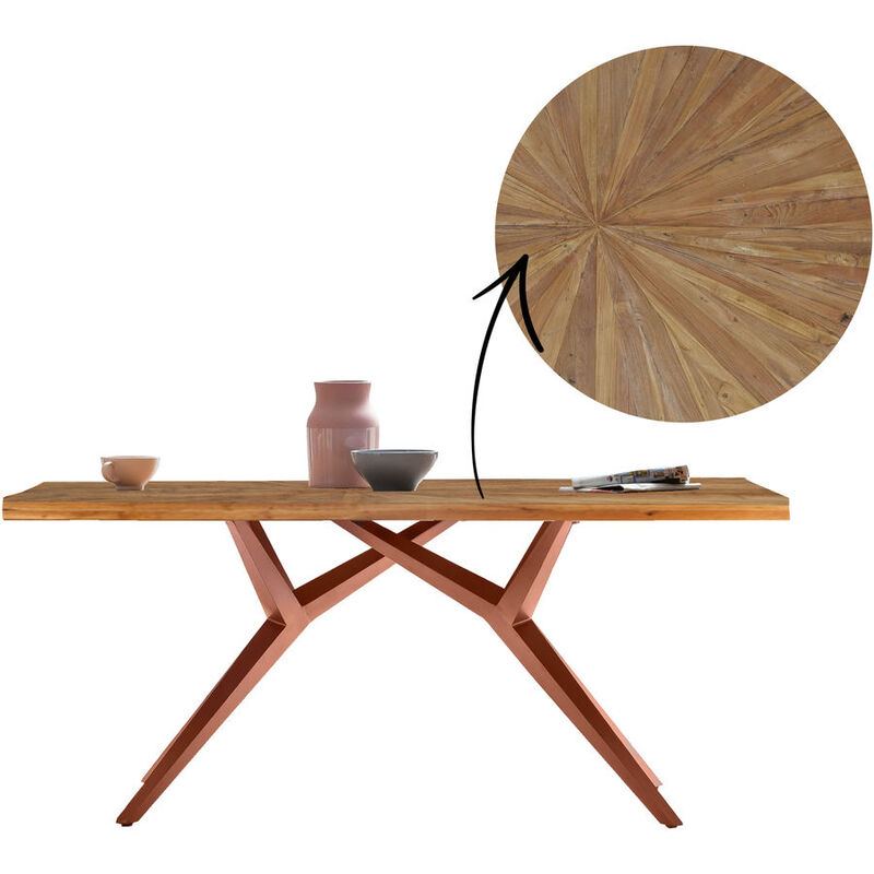 Esstisch – Esstisch Gordon – Recyceltes Teak massiv – B 240 T 100 H 76 cm – Plattenstärke 50 mm