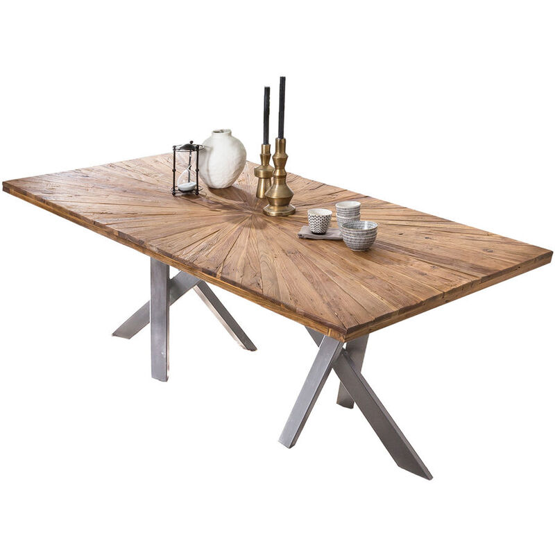 Esstisch – Esstisch Janosch – Recyceltes Teak massiv – B 180 T 100 H 77 cm – Plattenstärke 50 mm, Rechteckrohre 8×4 cm