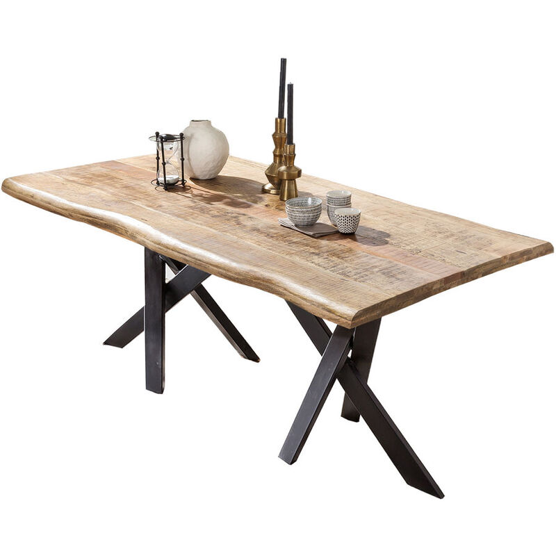 Esstisch – Esstisch Loris – Mangoholz massiv – B 240 T 100 H 75 cm – Plattenstärke aufgedoppelt auf 56 mm, Rechteckrohre 8×4 cm