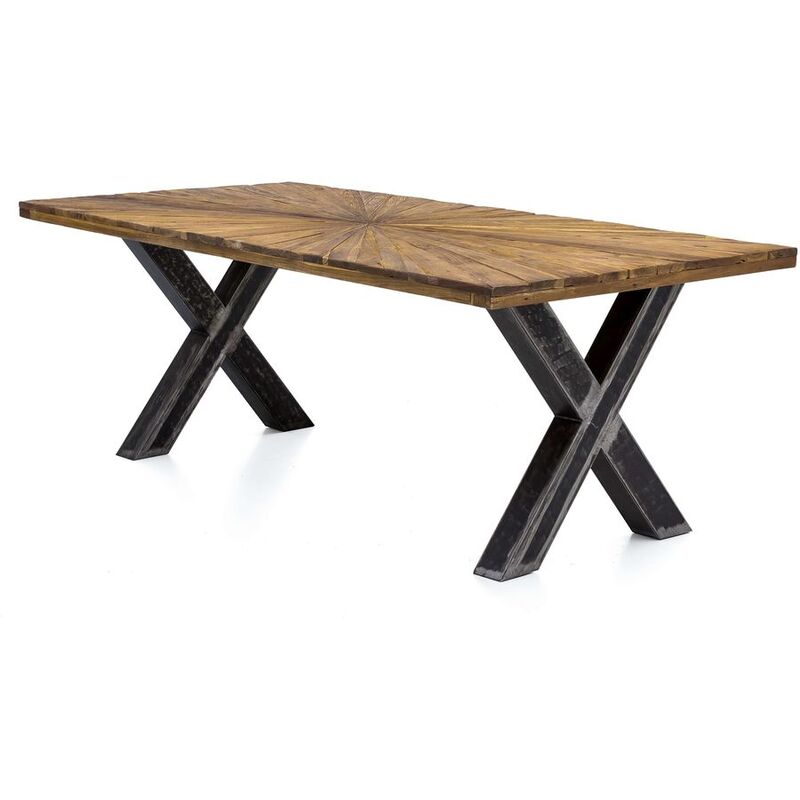 Esstisch mit einer Platte aus massivem Teakholz, mit Füssen aus Roheisen