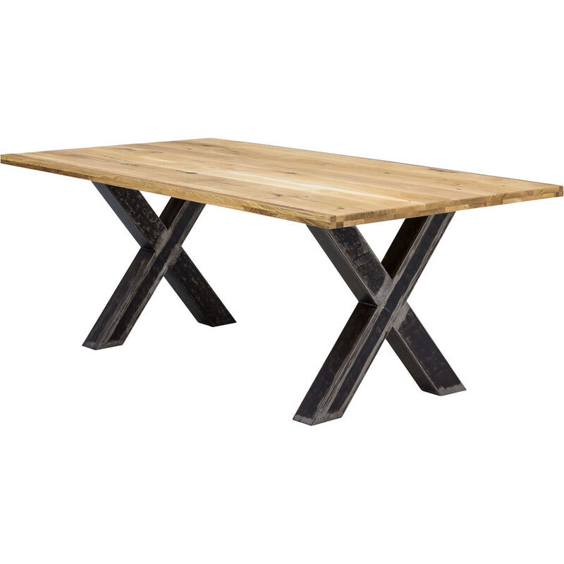 Esstisch mit einer Platte aus massiver Wildeiche, mit Füssen aus Roheisen
