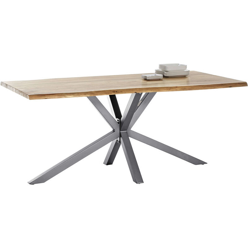 Esstisch mit einer Platte aus massiver Akazie, natürlich belassene Baumkante