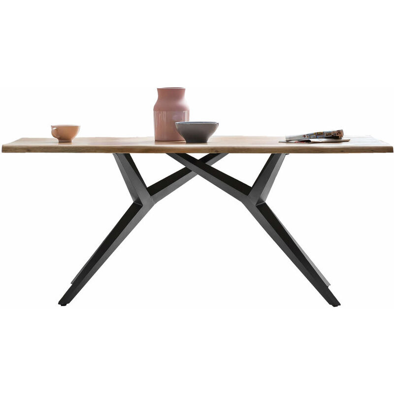 Esstisch mit einer Platte aus massiver Akazie, natürlich belassene Baumkante