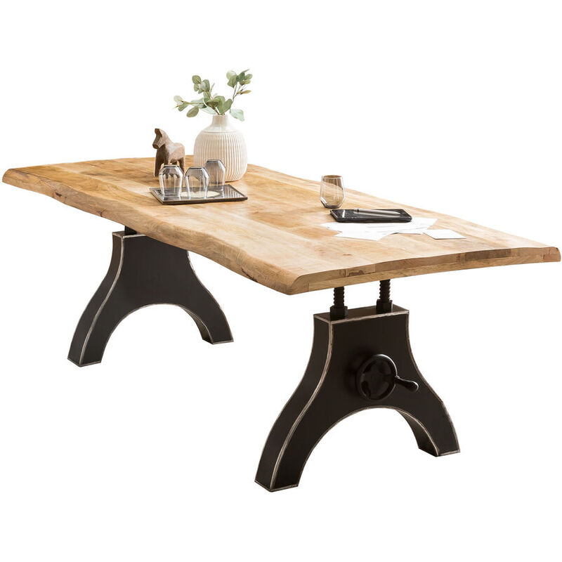 Yum Tisch 220×100 cm natur – Esstisch Yum – Mangoholz massiv – B 220 T 100 H 74 cm – Platte Baumkante wie gewachsen / Gestell A-förmig, schwarz