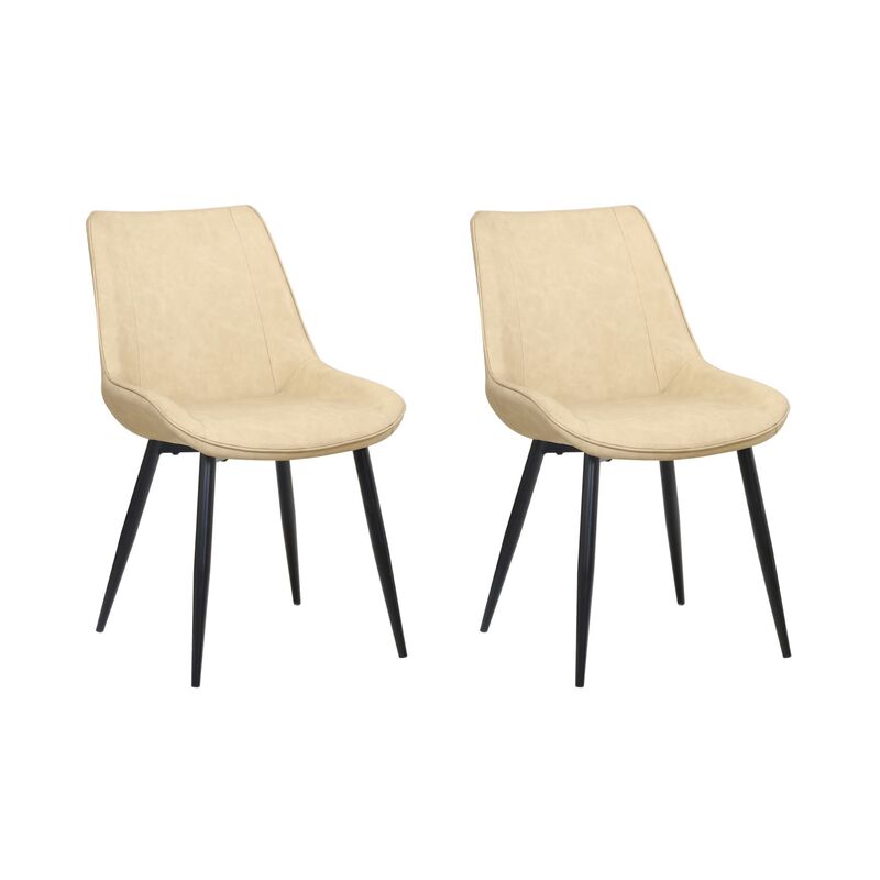 Diese Stühle passen zu jedem Wohnstil! Die Modellreihe SAM kannst du dank dem simplen Look mühelos mit deine bestehenden Einrichtung kombinieren. Der beigefarbene Bezug aus pflegeleichtem Kunstleder und die schwarzen Metallbeine werten dein Esszimmer auf. Komfort und Stabilität sind dank der hochwertigen Verarbeitung gegeben. Hol dir mehrere 2er Sets und geniesse geselliges Beisammensein!