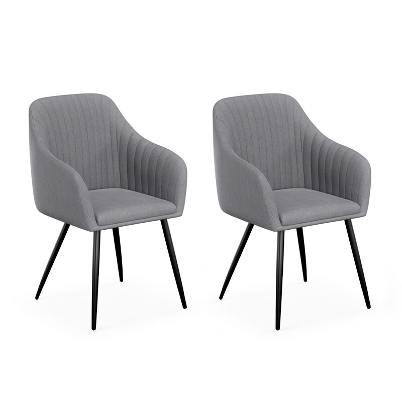 Geniesse jede Mahlzeit! Diese Stühle sind nicht nur bequeme Sitzgelegenheiten, sondern werten dein Esszimmer mit ihrem modernen Design auf. Weiches Textilmaterial in dezentem Grau, eine angenehme Polsterung mit Armlehnen, dazu stabile Beine aus Metall – diese Stühle werden zu deinem Lieblingsstücken am Esstisch. Ob ein ausgedehntes Frühstück oder ein gemeinsames Abendessen – gönne dir eine Auszeit auf diesen gemütlichen Stühlen!