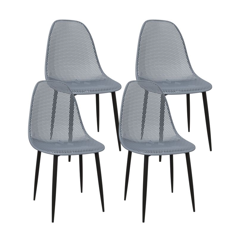 Dieser Esszimmerstuhl im 4er Set bietet eine Kombination aus modernem Design und Funktionalität. Der Sitz und die Rückenlehne des Stuhls bestehen aus robustem Kunststoff, der pflegeleicht und langlebig ist. Die Sitzfläche ist ergonomisch geformt, um eine bequeme Sitzposition zu gewährleisten. Gleichzeitig sind die Metallbeine stabil und sorgen für eine sichere Basis. Hole dir das praktische 4er Set und geniesse gemeinsame Abendessen!