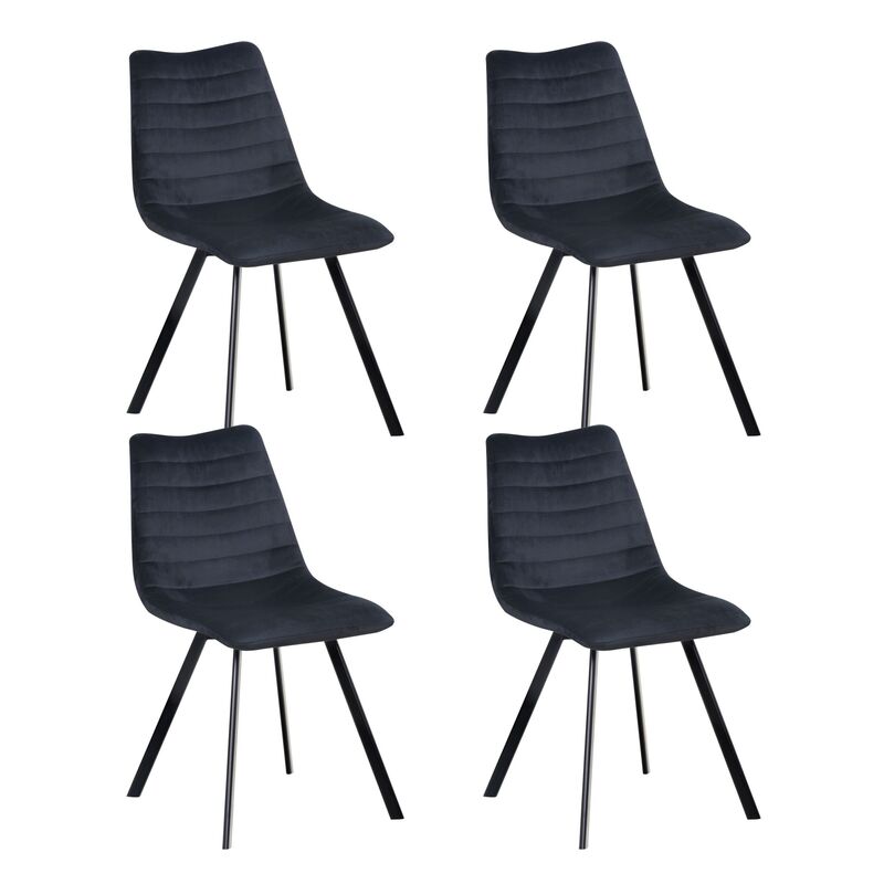 Hol dir diese bequemen Esszimmerstühle im praktischen 4er Set! Der Stoffbezug aus weichem Samt mit eleganter Quersteppung bietet unvergleichlichen Komfort. Die schwarzen Metallbeine garantieren Stabilität beim Sitzen und runden den edlen Look der Stühle ab. Richte dein Esszimmer modern und gemütlich ein!