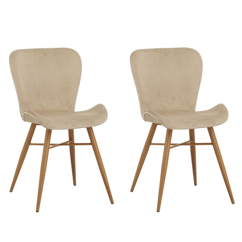 - Zwei Esszimmerstühle mit weichem Samtbezug in dezentem Beige