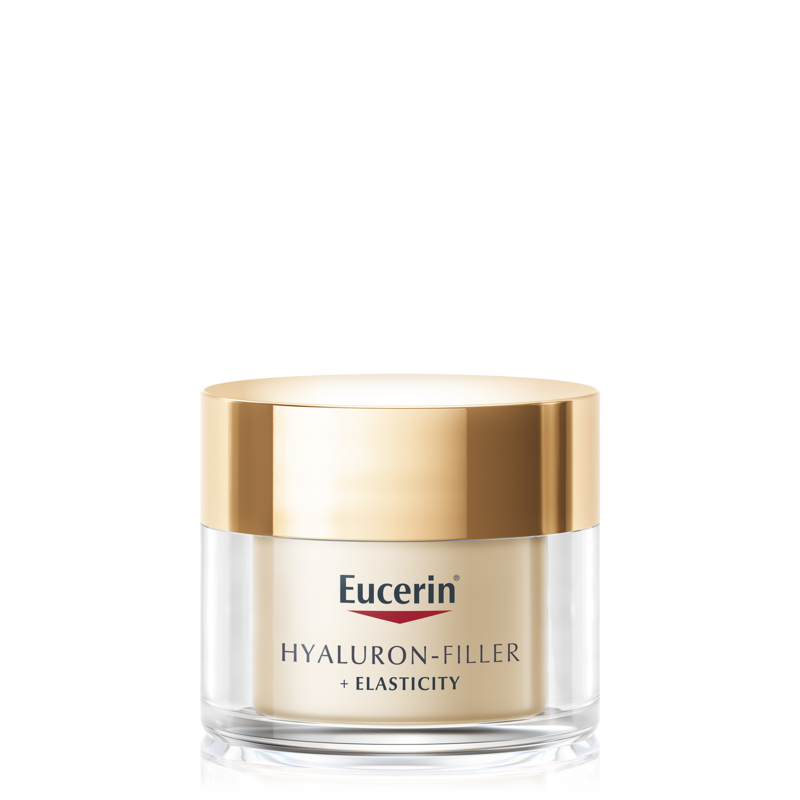 Anti-Age Tagespflege für reife Haut Eucerin Hyaluron-Filler + Elasticity Tagespflege LSF 30 ist eine Anti-Age -Tagespflege, die Falten mildert, die Elastizität der Haut verbessert und Altersflecken korrigiert. Die einzigartige Formulierung wirkt gleich mehrfach gegen die fortgeschrittenen Zeichen der Hautalterung. Die Kombination aus lang- und kurzkettiger Hyaluronsäure von Eucerin spendet Feuchtigkeit und mildert Falten sichtbar. Der neue Kollagen-Elastin-Komplex, eine leistungsstarke Kombination aus Arctiin und Kreatin, stimuliert die Kollagenproduktion und erhöht die Elastizität der Haut. Das patentierte Thiamidol® von Eucerin mildert effektiv Altersflecken und beugt deren Neuentstehung vor. Für eine sichtbar jünger aussehende, glattere und strahlende Haut. Mit LSF 30 und UVA-Schutz schützt die Tagespflege vor frühzeitiger lichtbedingter Hautalterung und der weiteren Ausprägung der Falten. Als Teil der morgendlichen Pflegeroutine die Eucerin Hyaluron-Filler + Elasticity Tagespflege LSF 30 auf das gereinigte Gesicht, den Hals und das Dekolleté auftragen. Sanft in die Haut einmassieren.