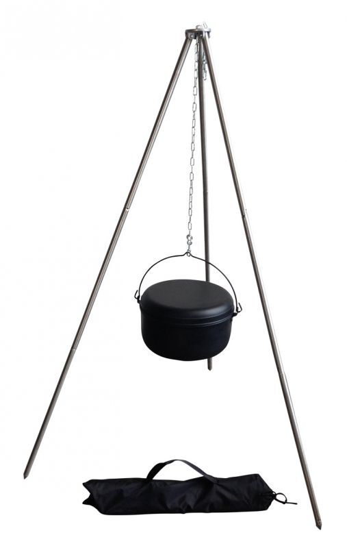 Dreibein komplett aus Chromstahl – hergestellt in der Schweiz! Dank der mitgelieferten Tragetasche kann das Dreibein problemlos transportiert werden. Mit den separat erhältlichen Pfadfinderkochtöpfen steht dem Festschmaus in der freien Natur nichts mehr im Wege. – verstellbar auf 90 und 135cm Höhe – komplett aus Chromstahl – hergestellt in der Schweiz Gewicht: ca. 2.3 Kilo Packmass: ca. 54cm x 8cm x 8cm Lieferumfang: Dreibein / Kette / Tragetasche Die passenden Pfadfinderkochtöpfe finden Sie ebenfalls in unserem Sortiment.