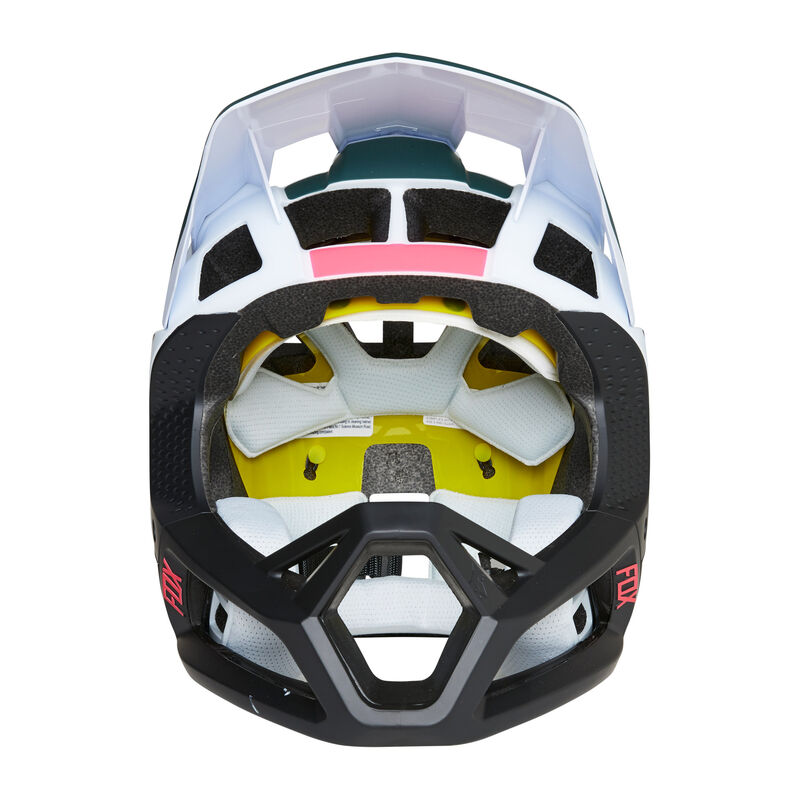 HELM PROFRAME VOW UNSER LEICHTESTER UND ATMUNGSAKTIVSTER INTEGRALHELM Wenn der Berg ruft, bietet dir dieser Integralhelm genau den Schutz, den du brauchst. Der Proframe Vow, der Original-Integralhelm für den Trail, ist nach wie vor unser marktführendes Modell. Das Design, das den Ansprüchen von Gelände- und Enduro-Piloten gerecht wird, kombiniert MIPS-Technologie und Dual-Density-EPS-Liner in einer superleichten Aussenschalung mit unserem patentierten, voll integrierten Kinnbügel. Der Proframe ist mit 15 Lufteinlass- und 9 Auslassöffnungen ausgestattet und bietet somit herausragende Luftzirkulation und Atmungsaktivität für deine Climbs und Abfahrten. Dank des integrierten Designs musst du nicht mehr anhalten, um den Kinnbügel abzunehmen und zu verstauen. Der Proframe bietet grenzenlosen Fahrspass. BACKYARD RACING DETAILS: * Zusätzlich reduziert das bewährte MIPS-Schutzsystem die Rotationsbewegung durch die Aufnahme und Ableitung von Energien und Kräften, die anderenfalls auf das Gehirn einwirken würden. * Der integrierte Fox-Kinnbügel ist mit unserem patentierten System am Helm gesichert und erfüllt die ASTM-Downhill-Standards. * Das hoch atmungsaktive Linersystem ist feuchtigkeitsableitend und hat antimikrobielle Eigenschaften. * 15 Big Bore-Lufteinlass- und 9 Auslassöffnungen für kühlen Tragekomfort und verbessertes Feuchtigkeitsmanagement * Das sicher befestigte Visier ist so positioniert, dass die Luft in die Big Bore-Lüftungsöffnungen kanalisiert wird. * Fidlock SNAP-Verschlussschnalle für schnelles und sicheres Öffnen und Schliessen, auch mit Handschuhen * Innenschale aus Varizorb Dual-Density-EPS für optimierten Aufprallschutz durch die Zerstreuung der bei einem Aufprall freiwerdenden Kräfte über eine grössere Fläche * Hinweis: Vermeide den Kontakt mit Sprays, wie Mücken- oder Sonnenschutzmitteln, denn dadurch kann der Lack deines Helms letztendlich abblättern. * PC, EPS, PU, Polyester, SS BY_FOXLFS_MTBSPRNG22_ALL,BY_MTBFOX22_SPRINGCLCTN,fox mtb spring 2022,fox spring 22 kollektion,fox frühlingskollektion,fox frühling 22 kollektion,fox mtb frühlingskollektion,fox mountainbike kollektion 2022,fox 2022,fox 22,fox mtb22,fox mtb 2022,helm mit mips,mips,mips helm,mtb helm mit mips,mtb helm mips,mips helmet,velohelm mips,fahrradhelm mips,mountainbike helm mips,endurohelm mips,mtb enduro helm mips,enduro helm mit mips,casco,casque,helmet,bikehelm,velohelm,casco bici,radhelm,fahrradhelm,enduro helm,allmountain helm,freeridehelm,enduro helmet,, 2022