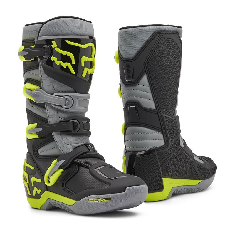 CROSSBOOTS COMP JUGEND Die Junior-Crossboots Comp haben alles, was junge Piloten brauchen, um ihre Maschinen mit Zuversicht zu steuern. Genau wie ihr großer Bruder liefern sie ein kraftvolles Paket aus großartigen Features: niedriges Profil, TPU-Protektoren mit vollständiger Abdeckung, beständige Außensohle und eine herausragende Passform. Die Juniorboots Comp sind allen Herausforderungen einer Saison auf der Rennstrecke und auch darüber hinaus gewachsen. Obwohl es sich um Kinderboots handelt, tragen sie die DNA der Champions in sich. BACKYARD RACING DETAILS: * Komfort ab dem ersten Moment und ausgezeichnete Passform * Obermaterial aus Mikrofaser-Kunstleder für überragenden Komfort und erstklassige Passform und Strapazierfähigkeit * Schienbein-, Fußgelenk-, Waden- und Verbrennungsschutz sowie Zehen- und Fersenkappen aus TPU für zuverlässige Abdeckung * Innenfutter aus atmungsaktivem Mesh für Komfort und Atmungsaktivität * Neues, verstellbares Verschlusssystem mit vier Schnallen für bequemen, sicheren Halt * Innensohle aus Verbundmaterial für Stabilität und Halt von den Zehen bis zur Ferse und in seitlicher Richtung auf den Fußrasten * Unser exklusives Fox Positac(tm)-Kautschuk-Verbundmaterial verleiht der Außensohle verbesserte Beständigkeit und unschlagbaren Grip * Wiederbesohlbare Außensohle aus Kautschuk * 60 % Kunstleder, 30 % TPU, 10 % Kautschuk fox,foxracing,fox racing 2025,fox racing 25,fox 2025,fox25,fox2025,fox 25,fox mx 25,fox mx 2025,fox mx25,fox motocross 2025,fox motocross 25,fox kids,fox kinder,kinder mx,kinder motocross,kinder ausrüstung motocross,kinder mx ausrüstung,mx jugendliche,motocross ausrüstung jugendliche,töffstiefel,mx boot,bottes,stivali,motorradstiefel,motocrossstiefel,ofrroadstiefel,cross stiefel,mx stiefel,crossschuhe,töff stifel,motocross stifel
