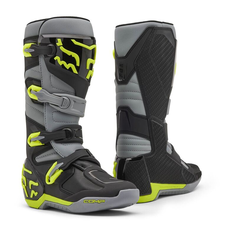 CROSSBOOTS COMP Unsere neu entwickelten Comp Boots mit optimiertem Profil bieten sofortigen Tragekomfort und eine herausragende Passform. Die Comp mit allen grundlegenden Features für den MX-Sport sind absolut zuverlässige Dirtbike-Stiefel für Piloten aller Levels. Das Obermaterial aus Mikrofaser-Kunstleder bietet überragenden Komfort, Passform und Strapazierfähigkeit, während das Innenfutter aus atmungsaktivem Mesh für zusätzlichen Komfort und Atmungsaktivität sorgt. Diese Stiefel garantieren sowohl auf dem Track als auch in Offroad-Situationen sicheren Halt und Schutz. Zudem bieten Schienbein-, Fußgelenk-, Waden- und Verbrennungsschutz sowie Zehen- und Fersenkappe aus TPU genau die Abdeckung, nach der du suchst. Das neue, verstellbare Verschlusssystem mit vier Schnallen bietet sicheren Halt und eine zuverlässige Passform. Zusätzlich sorgt die Innensohle aus Verbundmaterial für Stabilität und Halt von den Zehen bis zur Ferse und in seitlicher Richtung auf den Fußrasten, während unser exklusives Fox Positac(tm)-Kautschukverbund der Außensohle verbesserte Beständigkeit und unschlagbaren Grip verleiht. Das Beste von allem: Die Comp können neu besohlt werden, wodurch sich die Lebensdauer dieser unentbehrlichen Performance-Crossboots zusätzlich verlängert. BACKYARD RACING DETAILS: * Comp Boots mit optimiertem Profil für sofortigen Tragekomfort und herausragende Passform * Obermaterial aus Mikrofaser-Kunstleder für überragenden Komfort und erstklassige Passform und Strapazierfähigkeit * Schienbein-, Fußgelenk-, Waden- und Verbrennungsschutz sowie Zehen- und Fersenkappe aus TPU für zuverlässige Abdeckung * Innenfutter aus atmungsaktivem Mesh für Komfort und Atmungsaktivität * Neues, verstellbares Verschlusssystem mit vier Schnallen für bequemen, sicheren Halt * Innensohle aus Verbundmaterial für Stabilität und Halt von den Zehen bis zur Ferse und in seitlicher Richtung auf den Fußrasten * Exklusives Fox Positac(tm)-Kautschukverbund für verbesserte Beständigkeit der Außensohle und unschlagbaren Grip * Wiederbesohlbare Außensohle aus Kautschuk fox,foxracing,fox racing 2025,fox racing 25,fox 2025,fox25,fox2025,fox 25,fox mx 25,fox mx 2025,fox mx25,fox motocross 2025,fox motocross 25,töffstiefel,mx boot,bottes,stivali,motorradstiefel,motocrossstiefel,ofrroadstiefel,cross stiefel,mx stiefel,crossschuhe,töff stifel,motocross stifel