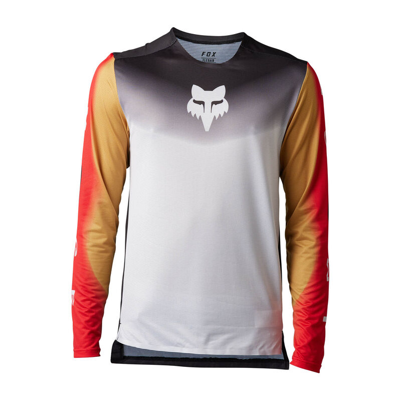 Wenn du mit widerspenstigen Zweigen überwachsene Trails hinabfliegst, bietet dir das langärmlige Jersey Flexair Novah nicht nur Schutz sondern auch die legendäre Energie und Performance von Fox, mit einem Design, das genauso rasant aussieht, wie es sich anfühlt. Neben der bewährten Flexair-Atmungsaktivität und dem feuchtigkeitsableitenden TruDri-Gewebe für kühlen, trockenen Komfort ist das Design bis ins kleinste Detail auf grenzenlose Bewegungsfreiheit ausgerichtet, damit du allen Hindernissen rechtzeitig ausweichen kannst. Und sollte Dir doch mal was in den Weg kommen, sorgen die abriebfesten Ärmel und Schulterpanels dafür, dass deine Gliedmassen trotzdem unversehrt bleiben. BACKYARD RACING DETAILS * TruDri-Gewebe zur Ableitung von Feuchtigkeit für trockenen Tragekomfort * Abriebfeste Panels an Ärmeln und Schultern für zuverlässigen Schutz vor Zweigen und Dornen auf dem Trail * Geschlitzter Saum für maximale Bewegungsfreiheit * Saum, Halsausschnitt und Ärmel mit gebondeten Nähten zum Schutz vor Rötungen * Nach dem Body-Mapping-Prinzip platzierte, lasergeschnittene Lüftungsöffnungen für gesteigerte Kühlung * 94 % Polyester und 6 % Elastan BY_TMBXOF23NRPS,BY_HEAFOXEW23,fox, fox 2023,fox23,fox 23,fox spring23,fox frühling 2023,fox frühling 23,fox mtb ausrüstung,fox mountainbike,fox mtb 2023,fox mtb 23,fox mountainbike 2023,fox mtb gear,fox mountainbike bekleidung,fox mtb bekleidung,Velobekleidung, Fahrradbekleidung, MTB Jersey, MTB Trikot, Downhill Trikot, Radtrikot, Fahrradtrikot, Trikot, Leibchen, maillot, maglia,langarm veloshirt,velokleider,mountainbike shirt,veloshirt