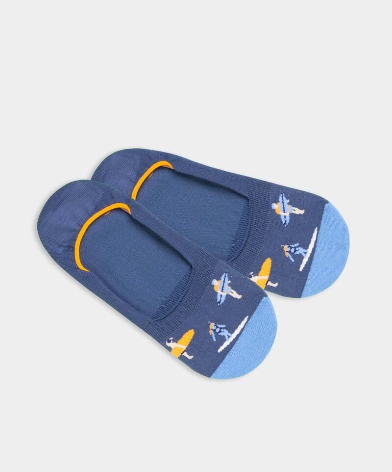 Die Hidden Wave Rider – unsichtbare blaue Sneakersocken mit Surf Motiv von DillySocks bestehen aus Biobaumwolle, werden fair und nachhaltig produziert, sind OEKO-TEX 100 Standard zertifiziert sowie klimaneutral. Die nachhaltigen fairtrade Bio-Sneakersocken sind kurz oder unsichtbar und enthalten keine Chemikalien sowie keine Pestizide. Die Verpackung der Invisibles und Shorties ist plastikfrei und nachhaltig. Die weichen bunten Sneakersocken verursachen keine Hautreizungen und keine Allergien. Die nachhaltigen und hochwertigen Damensocken und Herrensocken zeichnen sich durch das innovative und farbenfrohe Design aus und sind in vielen Mustern erhältlich. Ein grosser Teil der DillySocks ist GOTS zertifiziert. Die lustigen und bunten Premium Socken für Frauen und Männer aus Zürich besitzen eine einzigartige Qualität, einen hohen Tragekomfort sowie farbenfrohe und innovative Muster. Fair produziert werden die Socken in einem portugiesischen Familienunternehmen. Die Anti-Loch-Garantie sowie die verstärkten Fersen und Zehen zählen zu den Qualitätsmerkmalen von DillySocks aus der Schweiz. Durch fehlende Zwischenhändler gewährleistet DillySocks ein sehr gutes Preis-Leistungsverhältnis.