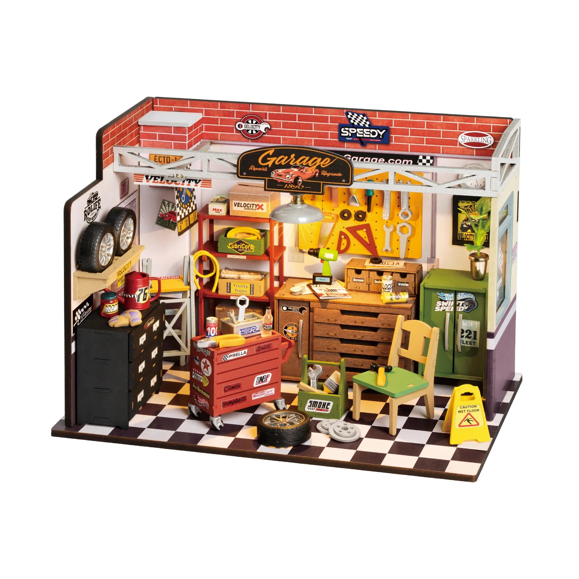 – Realistische Miniaturen: Werkzeug, Ersatzteile, Regale und vieles mehr erwecken die Werkstatt zum Leben.