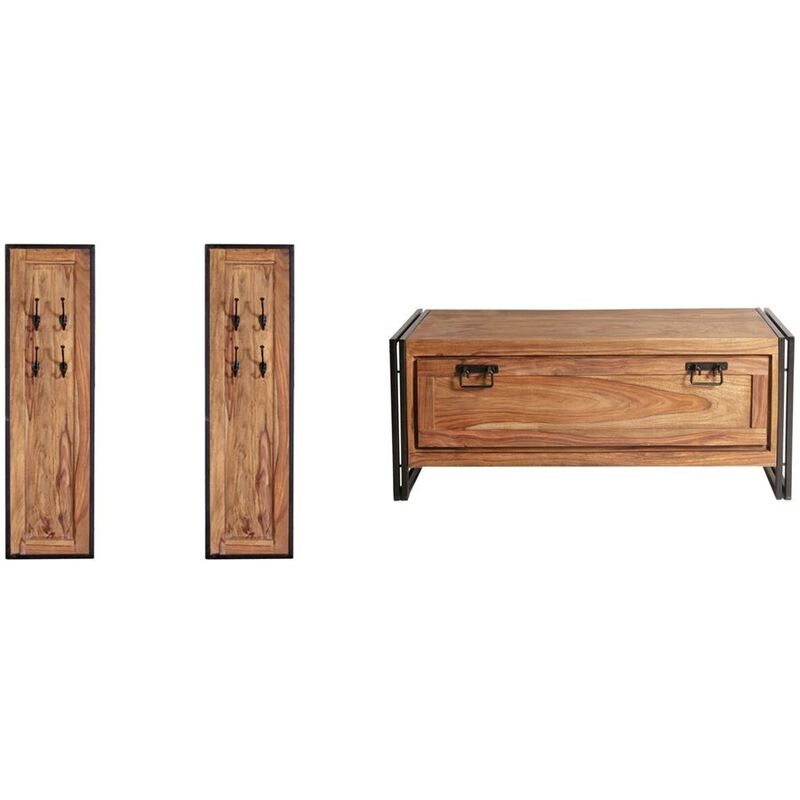 Garderobe – Garderobenmöbel Ecuador – Akazie – B 130 T 40 H 50 cm – Schuhschrank 130x40x50 cm für ca. 8 Paar Schuhe, Garderobenpaneel 35x8x110 cm, 4 Haken – 1 Schuhschrank, 2 Garderobenpaneele