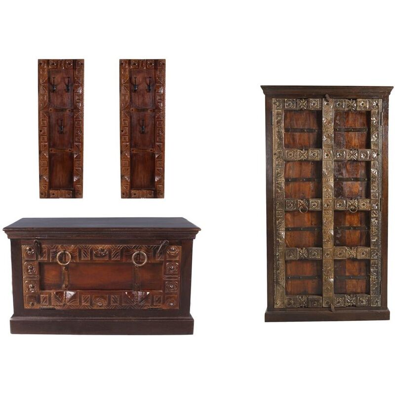 Garderobe – Garderobenmöbel Mirah – Recyceltes Altholz – B 85 T 40 H 45 cm – Schuhschrank 85x40x45 cm für ca. 6 Paar Schuhe, Garderobenpaneel 35x8x110 cm, 4 Haken, Kleiderschrank 100x45x180 cm – innen 3 Böden, 2 davon herausnehmbar, 1 herausnehmbare Kleiderstange,1 Schuhschrank, 2 Garderobenpaneele, 1 Kleiderschrank