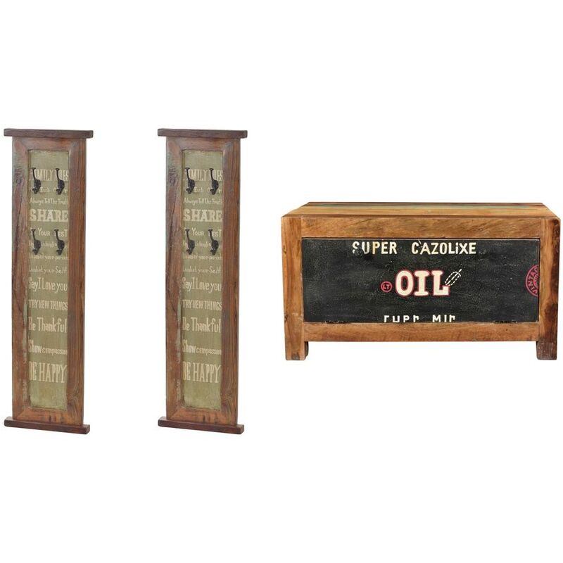 Garderobe – Garderobenmöbel Route – Altholz – B 85 T 40 H 45 cm – Schuhschrank 85x40x45 cm für ca. 6 Paar Schuhe, Garderobenpaneel 35x8x110 cm, 4 Haken, Kleiderschrank 80x40x180 cm – innen 3 Böden, 2 davon herausnehbar, 1 herausnehmbare Kleiderstange,1 Schuhschrank, 2 Garderobenpaneele, 1 Kleiderschrank
