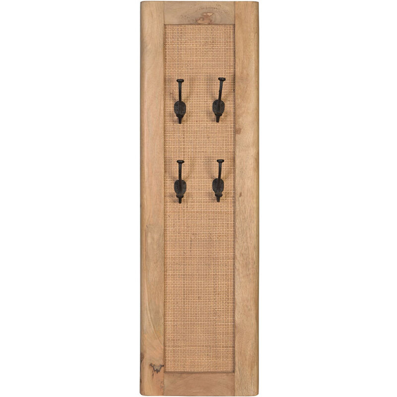 Garderobenpaneel – Garderobenpaneel Umberto – Mango – B 35 T 8 H 110 cm – Holzrahmen mit Rattan-Einsatz – 4 Metall Doppel-Haken