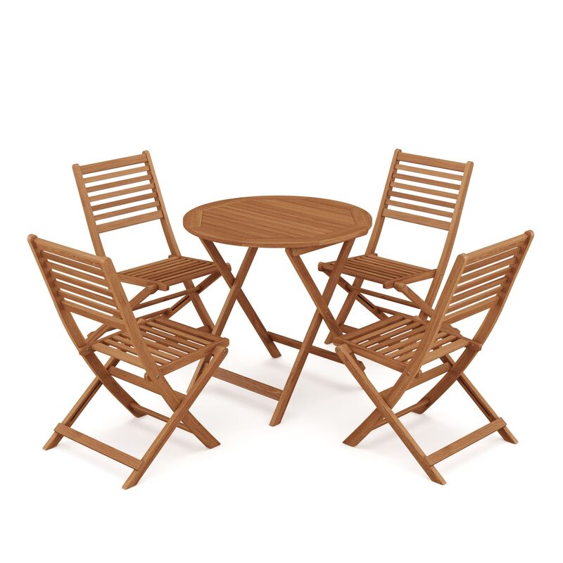 Darf in keinem Garten fehlen: das charmante Gartenmöbel Set AOSTA aus Massivholz! Das natürliche Holzdesign fügt sich wunderbar in die bestehende Terrassengestaltung ein. An dem runden Tisch und auf den vier Stühlen können du und deine Lieblingsmenschen bequem Platz nehmen. Geniesse Grilladen und gesellige Runden an diesem einzigartigen Gartenmöbel aus Akazienholz!
