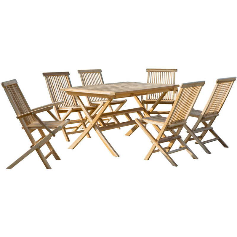 Sitzgruppe – Gartenmöbel-Set Mr&Mrs – Teak – B 85 T 135 H 75 cm – Masse der Stühle: 47x57x89 cm, Masse der Armlehnstühle: 56x51x89 cm, Masse des Tisches: 135x85x75 cm