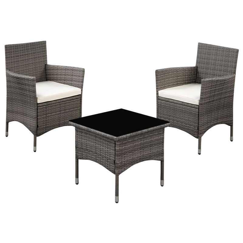 Dieses Rattanmöbel-Set mit zwei Stühlen und einem Beistelltisch ist ideal für Balkone und Terrassen. Die Fertigung aus Polyrattan sorgt für Witterungsbeständigkeit und Robustheit. Die eleganten Möbel können natürlich auch im Innenbereich verwendet werden. Dank den hohen Rückenlehnen und den weich gepolsterten Kissen bieten die Stühle hohen Sitzkomfort. Die Tischplatte aus gehärtetem Glas bietet Abstellfläche für Getränke, Snacks und Lektüren. Holen Sie sich dieses Gartenmöbel-Set und geniessen Sie draussen das entspannende Verweilen!