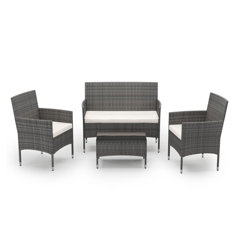 Das Gartenset MALIA verschönert deinen Garten oder deine Terrasse. Das Gartenmöbel ist aus robustem und pflegeleichtem Rattan gefertigt. Die dazugehörenden Sitzkissen ermöglichen ein komfortables Verweilen. Der Gartentisch mit Glasplatte ist praktisch und dekorativ. Gönne dir eine entspannte und schöne Zeit mit der MALIA Lounge in Grau-Weiss!
