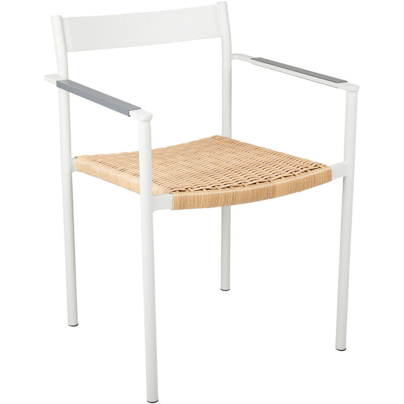 Jora Gartenstuhl hellgrau – Gartenstuhl Jora – Alu-Rattan – B 54 T 55 H 77 cm – Rahmenhöhe vom Boden: 64 cm – mit Armlehnen