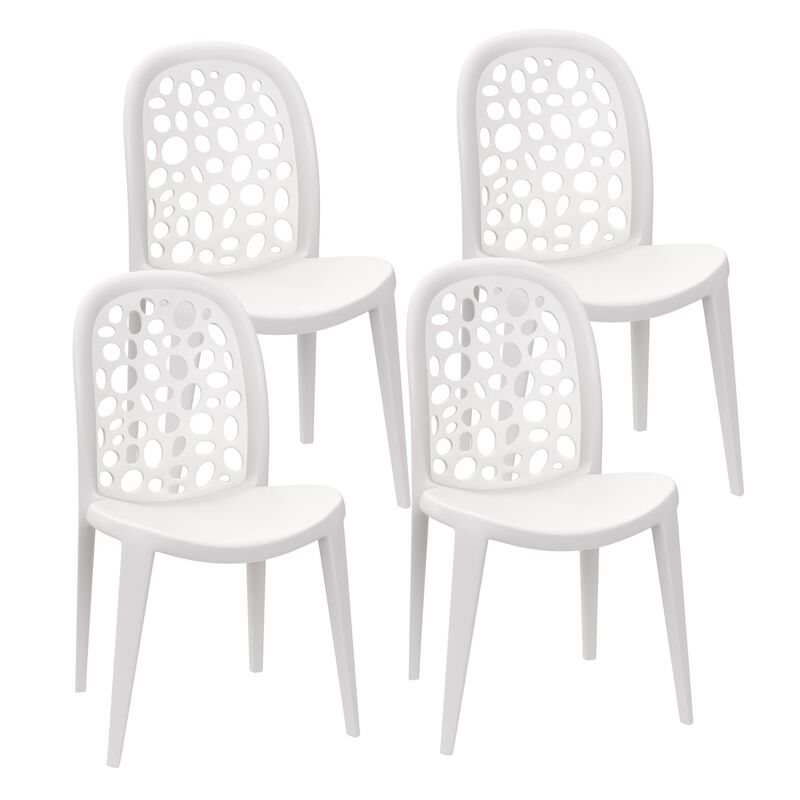 Die Gartenstühle LONA bieten eine stilvolle und bequeme Sitzgelegenheit auf der Terrasse und im Garten. Das originelle Lochmuster in der Rückenlehne macht die Sitzmöbel zum Hingucker. Dank der Verarbeitung aus robustem Kunststoff haben die Stühle ein geringes Gewicht und sind einfach zu pflegen. Setz dich mit Familie und Freunden an den Gartentisch und geniesse entspannende Stunden auf diesen weissen Gartenstühlen!