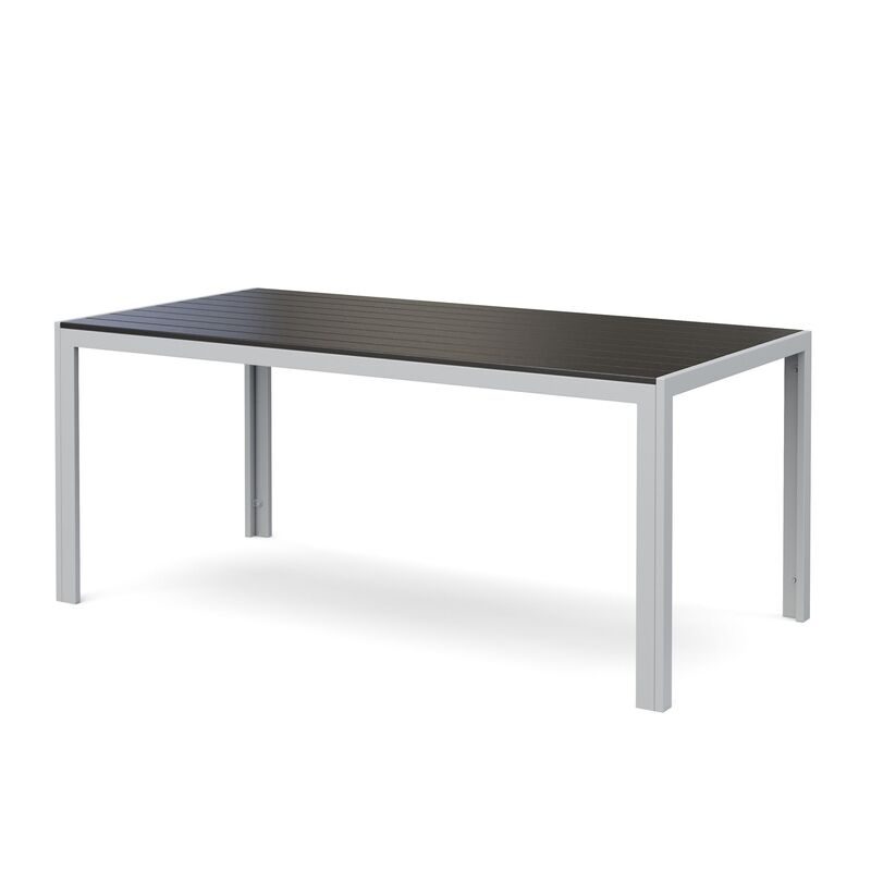 Fehlt dir noch der passende Tisch für den Gartensitzplatz oder Balkon? Der Tisch ENZI macht dank seines schlichten Designs überall eine gute Figur. Mit der Grösse von 180 x 90 cm bietet er bequem Platz für mehrere Personen. Die Verarbeitung aus Aluminium und Kunstholz machen den Tisch pflegeleicht und ideal geeignet für den Aussenbereich. Freue dich auf gemütliche Stunden an diesem zeitlosen Gartentisch!