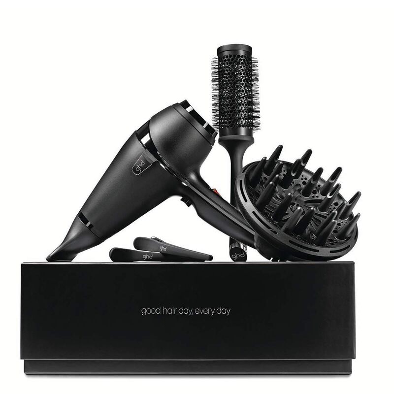 Der ghd Air Kit Föhn (Haartrockner) alles was Du für ein ultimatives Föhnergebnis benötigst. Beinhaltet den ghd air professional Haartrockner mit leistungsstarkem Motor für super schnelles Trocknen und IonenTechnologie für ein geschmeidiges Salonfinish in der Hälfte der Zeit. Einen ghd air Diffusor für natürliche Locken und Volumen eine Zentrierdüse für präzises Styling 2 Clips zum Abteilen der Haare für ein leichteres Stylen eine ghd ceramic vented radial brush size 3 um Ihrem Föhnergebnis Volumen und Form zu verleihen und eine weiche ghd air Stofftasche zum Schutz und zur besseren Aufbewahrung. Produkteigenschaften Variable Temperaturund Geschwindigkeitsstufen inklusive Kaltlufttaste Ergonomisches Design für Links und Rechtshänder 3 m langes verstärktes Kabel