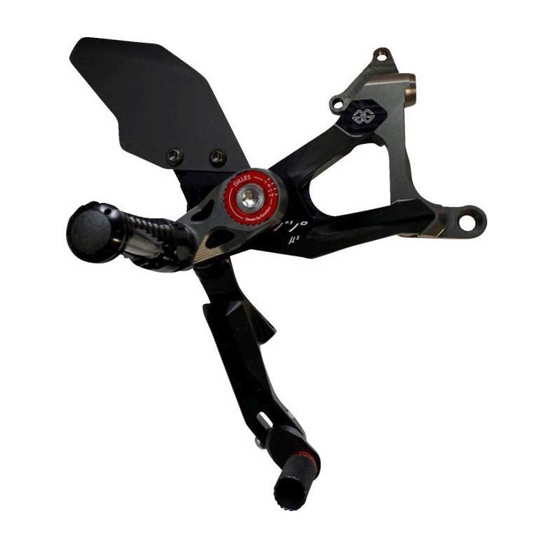 GILLES EINSTELLBARE FUSSRASTENANLAGE MUE2, SCHWARZ Eine völlig neue Generation von Fussrastenanlagen Die MUE2 kombiniert futuristisches Design mit allerhöchster Verarbeitungsqualität und deutlich vereinfachter Einstellbarkeit der Fussrastenposition. Schwarz eloxiert, mit farblich abgesetzten Verstellern, ist Sie auch optisch ein Highlight an jedem Bike. Die Positionen von Fussrasten sowie Brems- und Schalthebeln sind nach eigenen Wünschen frei einstellbar. Die Positionierung der Fussrasten erfolgt durch eine Kombination aus schieb- und drehbarer Einstellung an nur einem Punkt, so ist diese extrem schnell und einfach wählbar (fünf Positionen durch Schieben und vier Positionen durch Drehen). Der Umbau auf Umkehrschaltung erfolgt durch das einfache Verdrehen des Schaltarms. Brems- und Schalthebel sind doppelt kugelgelagert für eine perfekt spielfreie Funktion der Hebel, über Exzenter lassen sich die Trittstücke je nach Wunsch einstellen. Aluminiumfersenschützer beidseitig runden den Lieferumfang ab. Diese Anlage ist mit klappbaren Rasten ausgestattet. Diese Anlage besitzt eine ABE. multivariable fussrastenanlage,zurückversetzte Fussrasten,performance fussrastenanlage,alu fussrasten anlage,alu rastenanlage,Rearset,Sportfussrastenanlage,Zubehörfussrastenanlage,aftermarket rearset,commande reculee,commande reculée,repose-pieds,pedane arretrate,poggiapiedi,Fussrastensatz,Rastenanlage,Fussrastensystem,Rastenanlagen-Kit,Verstellbare Fussrasten,Sportliche Fussrasten,Aluminium-Fussrasten,Custom Fussrastenanlage,Renn-Fussrasten,Austausch Rastenanlage,Fussrastenverlängerungen,Motorrad-Fussrasten-Set,Fussrastensysteme für Motorräder,Fussrastenverstellung,Fussrasten für Strassenmotorräder,Verstellbare Fussrastenanlage,Motorrad Fussrastensystem,starre Fussrastenanlage,klappbare Fussraste,foldable rearset,BY_STRTRCTRCK Passend auf: DUCATI STREETFIGHTER 1100 V4 STREETFIGHTER 1100 V4 S STREETFIGHTER 1100 V4 SP