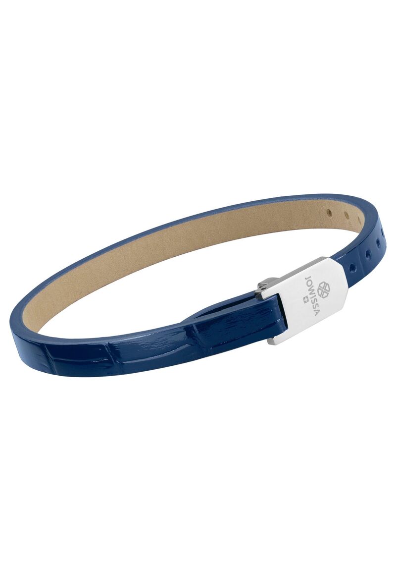 GeschlechtWeiblich MaterialEchtes Lederarmband mit glanzlackierter Alligatorprägung SchliesseAus Edelstahl mit lasergraviertem Logo Verstellbereich170-230 mm Bandbreite7 mm VerschlussartBox-Schnalle ColorStahl / Blau ReferenceJS.0111